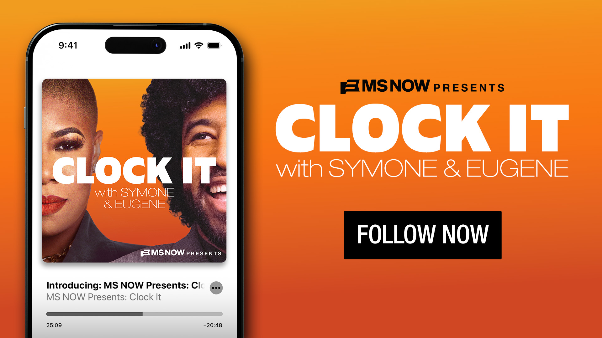 (New York – Feb. 5, 2026) – Symone Sanders Townsend and Eugene Daniels will launch an all-new original podcast, “MS NOW Presents: Clock It.” In the series, the Washington power-players will take on the latest political news, the catchiest cultural moments, and how the two converge. The first episode in the series will be available across podcast platforms and YouTube on Thursday, Feb. 12, with new episodes dropping weekly.