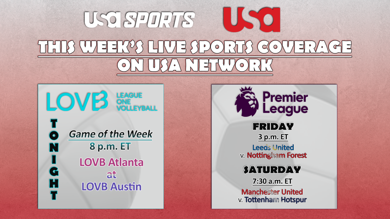STAMFORD, Conn. – Feb. 4, 2026 – USA Network’s live sports coverage continues this week with LOVB’s Game of the Week tonight at 8 p.m. ET and two Premier League matches, including fourth-place Manchester United hosting Tottenham Hotspur at 7:30 a.m. ET on Saturday.